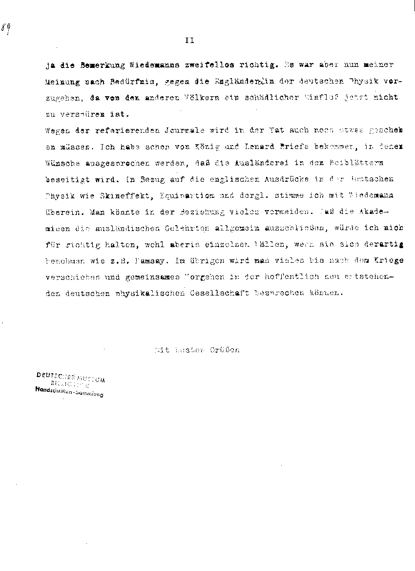 deutschen Physik; bezieht sich auf Brief von Eilhard Wiedemann.