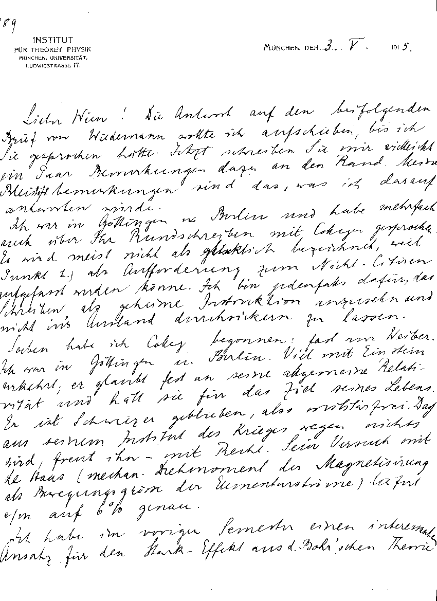 Archiv: München, DM (Archiv NL 56, 005) In Band 1 der Sommerfeldedition enthalten.