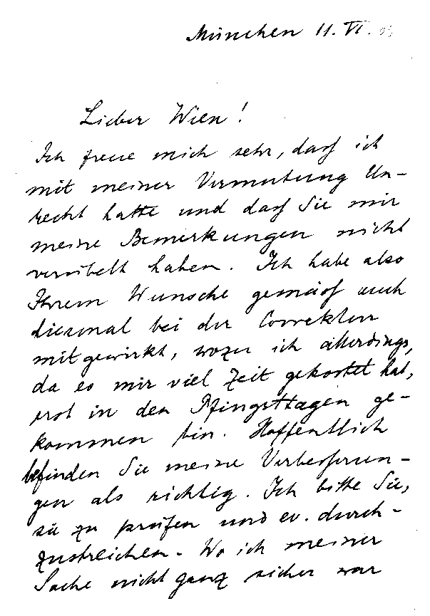 Arnold Sommerfeld an Wilhelm Wien, 11. Juni 1908