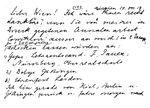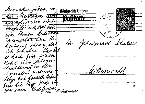 Arnold Sommerfeld an Wilhelm Wien, 14. August 1917