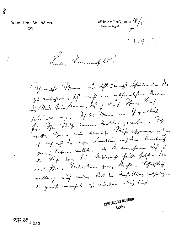Archiv: München, DM (Archiv HS 1977-28/A,369) In Band 1 der Sommerfeldedition enthalten.