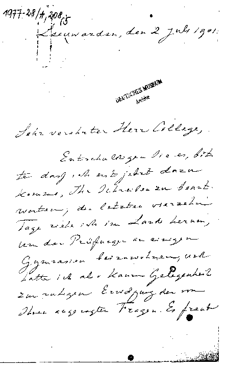 Hendrik A. Lorentz an Arnold Sommerfeld, 2. Juli 1901