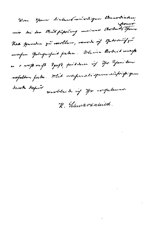 Schwarzschild bedankt sich für Interesse von AS und für dessen Arbeit