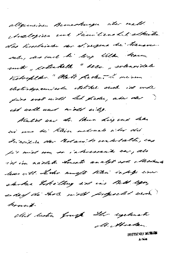 Max Abraham an Arnold Sommerfeld, 7. Oktober 1900