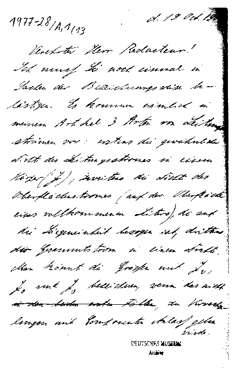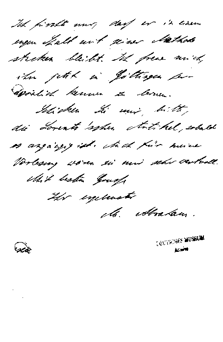 Max Abraham an Arnold Sommerfeld, 19. Oktober 1901
