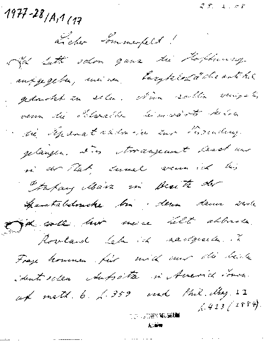 Max Abraham an Arnold Sommerfeld, 28. Januar 1908