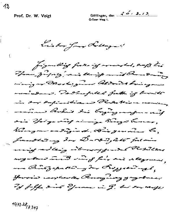 Woldemar Voigt an Arnold Sommerfeld, 26. März 1913