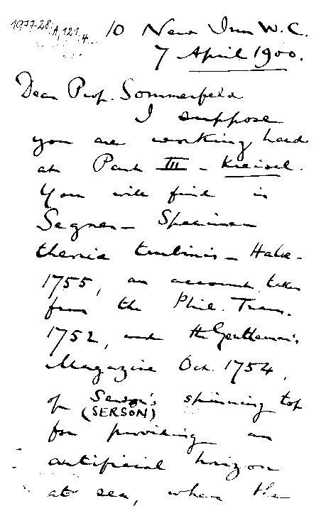 George Greenhill an Arnold Sommerfeld, 7. April 1900