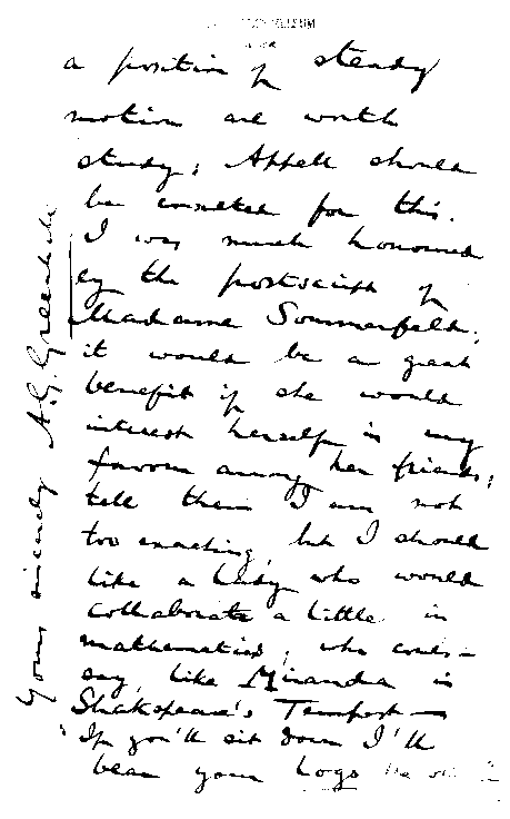 Tempest« zu schauen, »who would collaborate a little in mathematics«.