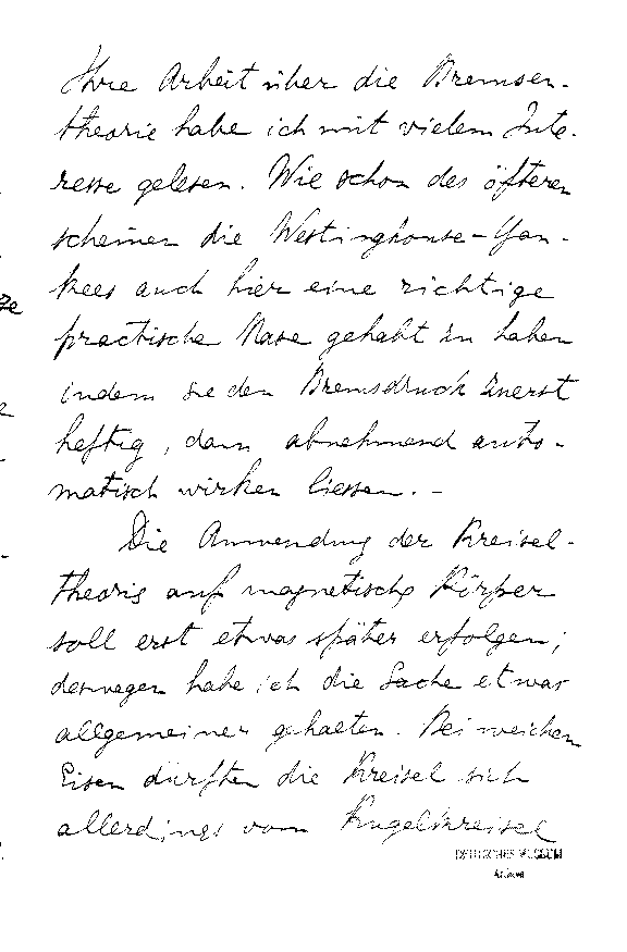 »sleeping top«); ist an der Bremsentheorie von AS interessiert und