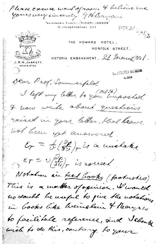 George Bryan an Arnold Sommerfeld, 21. März 1901