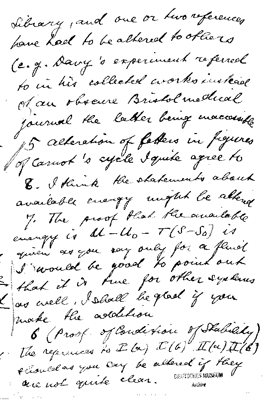 Bryan diskutiert verschiedene Punkte seines Encyklopädieartikels Thermodynamik.