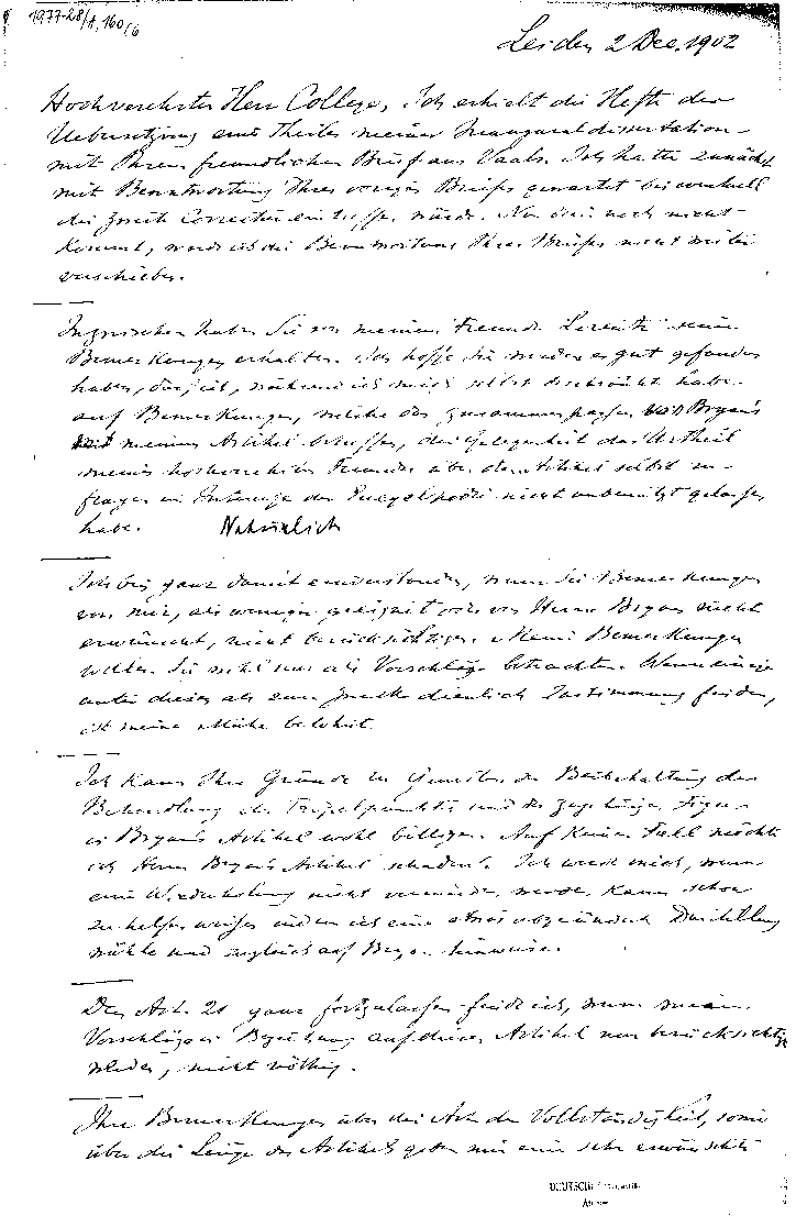 Heike Kamerlingh Onnes an Arnold Sommerfeld, 2. Dezember 1902
