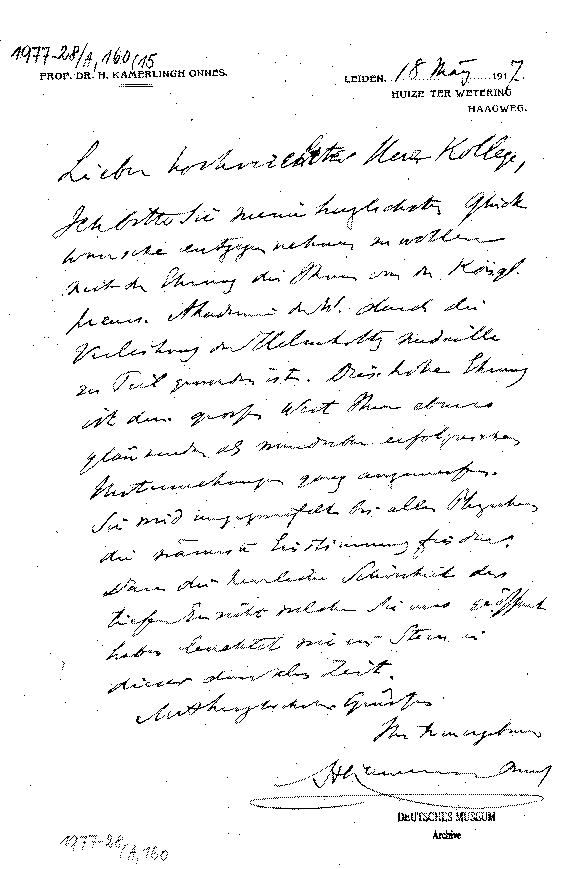 Heike Kamerlingh Onnes an Arnold Sommerfeld, 18. März 1917