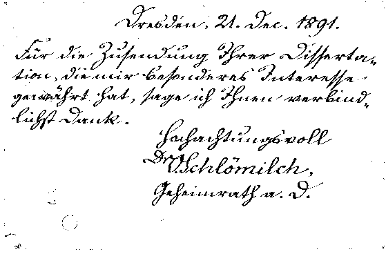 Schlömilch bedankt sich bei AS für die Übersendung der Dissertation.