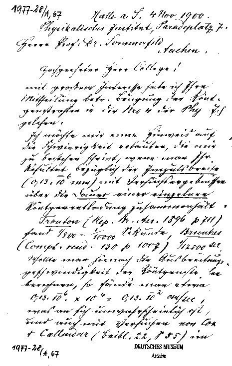 Ernst Dorn an Arnold Sommerfeld, 4. November 1900