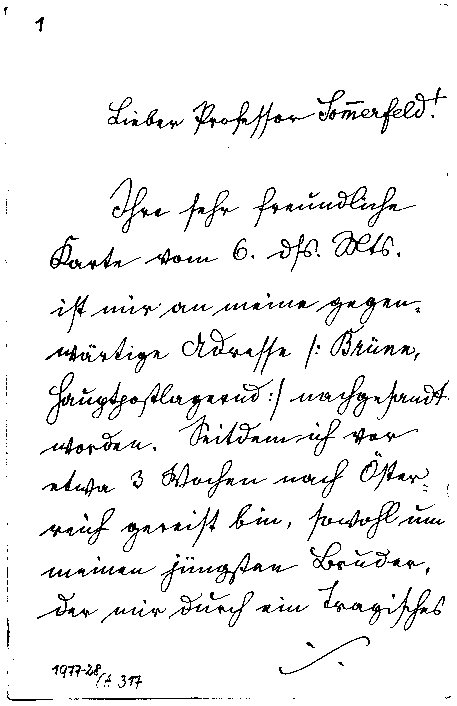 Ignaz Schütz an Arnold Sommerfeld, 9. Juni 1908
