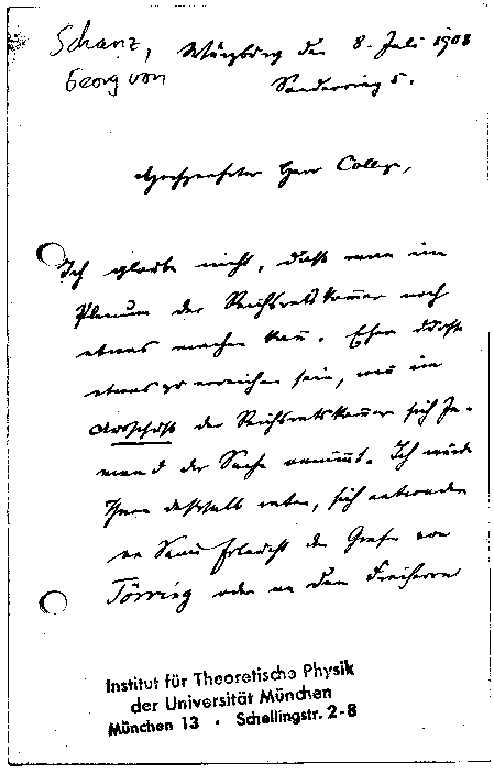 Georg von Schanz an Arnold Sommerfeld, 8. Juli 1908