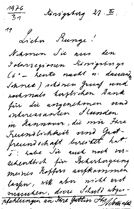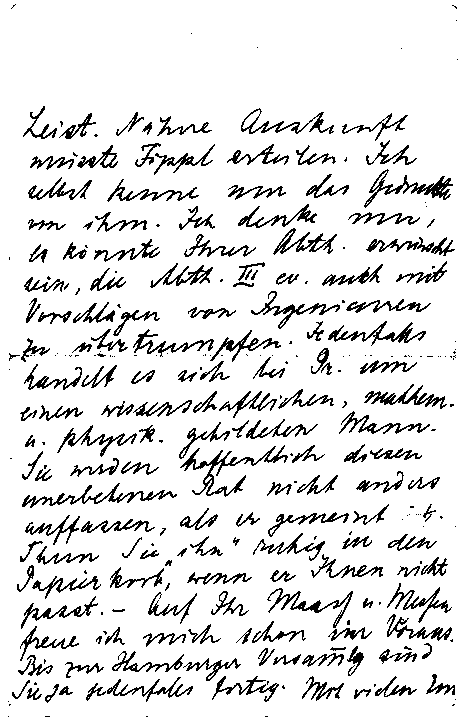 AS bedankt sich für Gastfreundschaft in Hannover (auf der Reise nach Königsberg); empfiehlt Prandtl für Professur Mechanik an der TH Hannover.