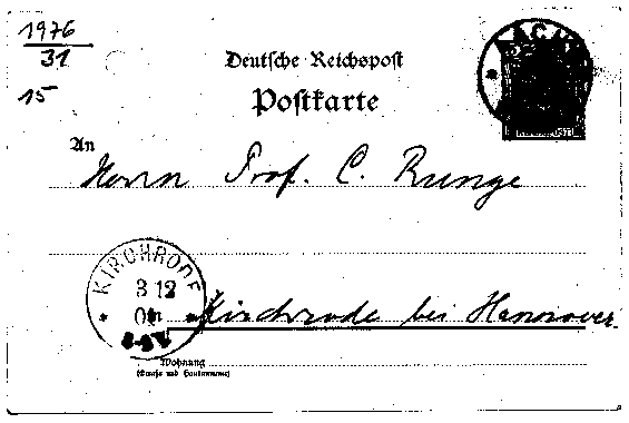 Runge an Artikel über Spektralanalyse für W. Wien.