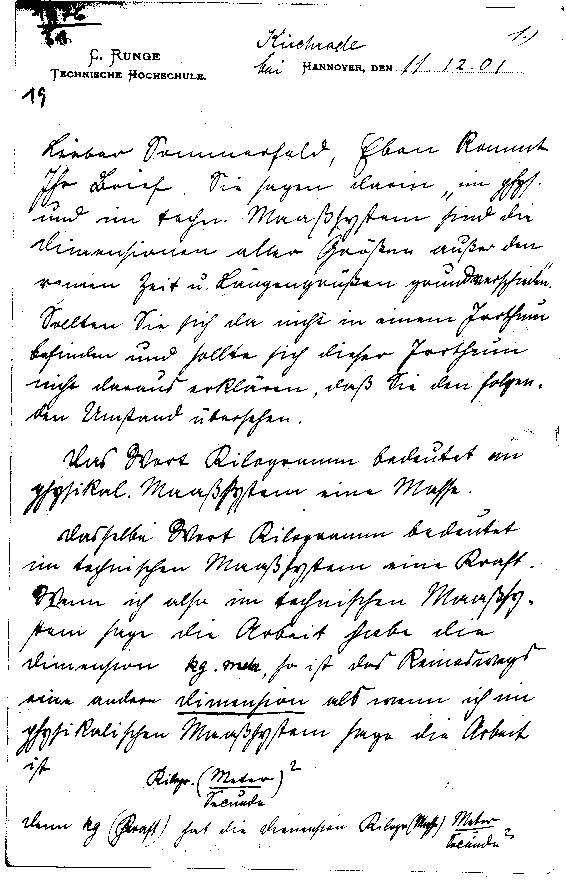 Runge setzt Diskussion über technisches und physikalisches Maßsystem fort.
