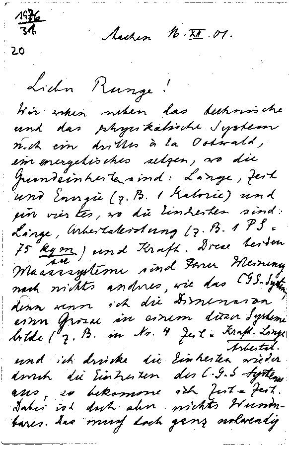 Arnold Sommerfeld an Carl Runge, 16. Dezember 1901