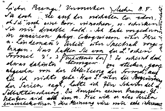 Spektrallinien, nachdem er im physikalischen Kolloquium über Runges