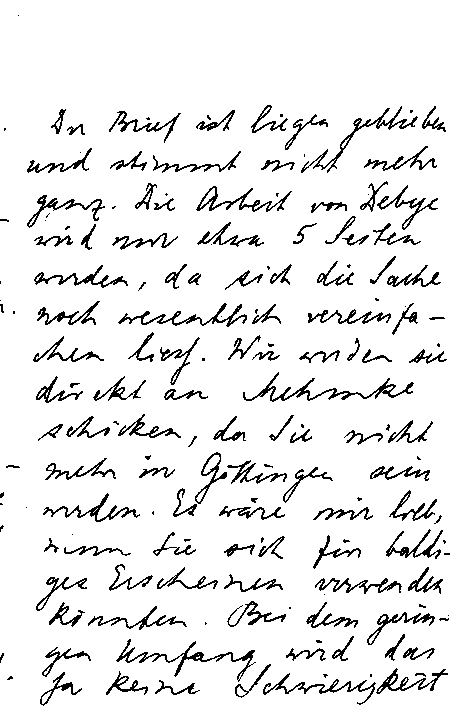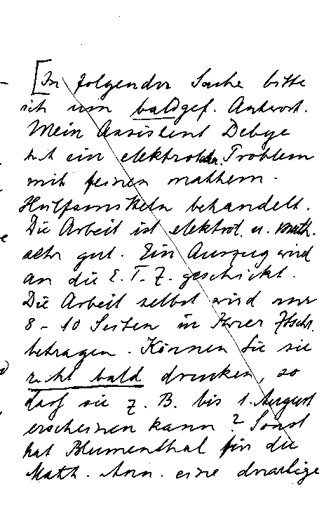 um schnelle Veröffentlichung einer Arbeit von Debye; erkundigt sich, ob