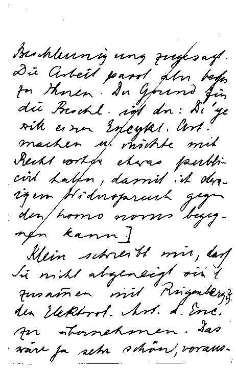 über Elektrotechnik zu schreiben; bedankt sich für Runges Anteilnahme