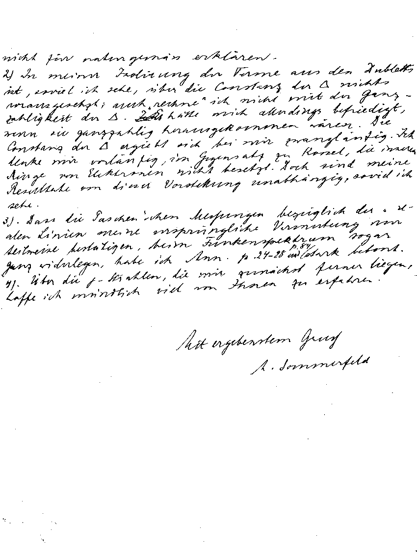 AS bespricht Vortragstermine für Swinnes Kolloquiumsteilnahme; setzt Diskussion über Röntgenspektren fort; erwähnt Diskrepanz zu Paschens Messungen.