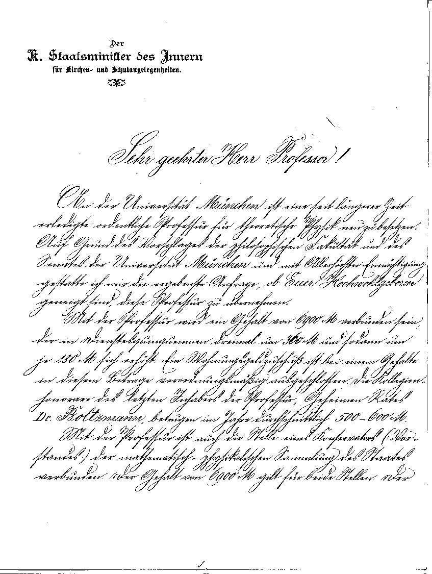 Berufungsschreiben von dem »Staatsminister des Innern für Kirchen-