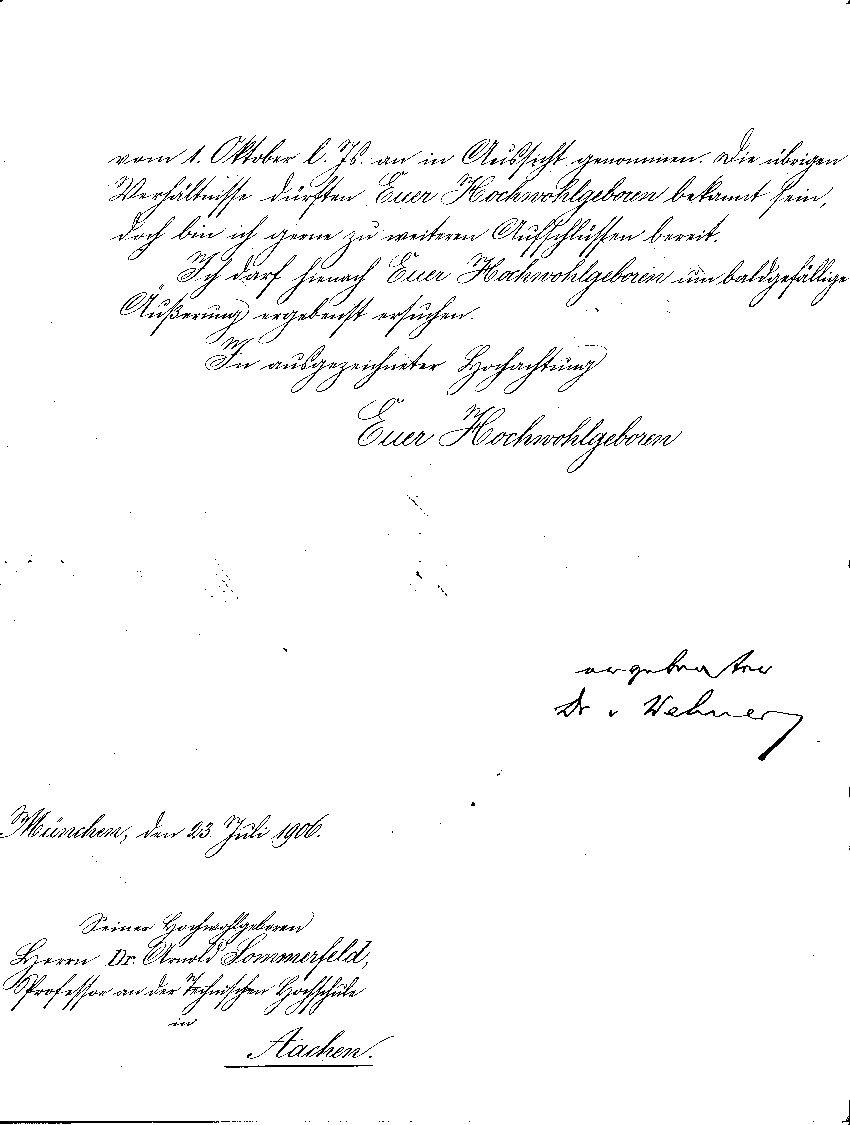 Anton von Wehner an Arnold Sommerfeld, 23. Juli 1906