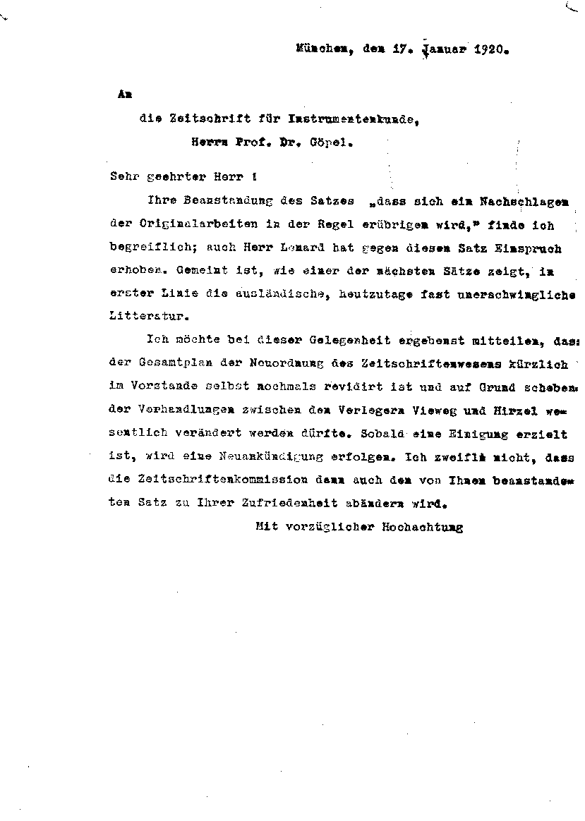 Arnold Sommerfeld an Friedrich Göpel, 17. Januar 1920