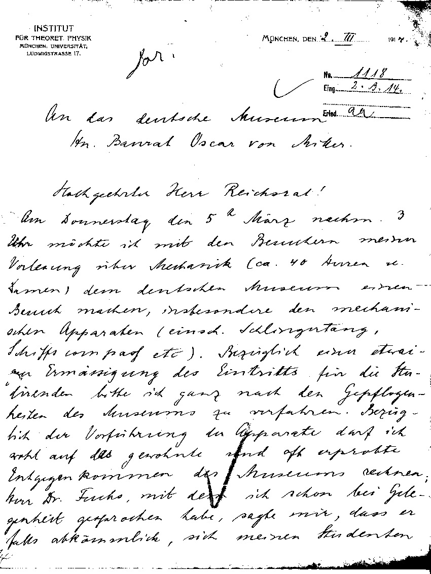 Arnold Sommerfeld an Oskar von Miller, 2. März 1914