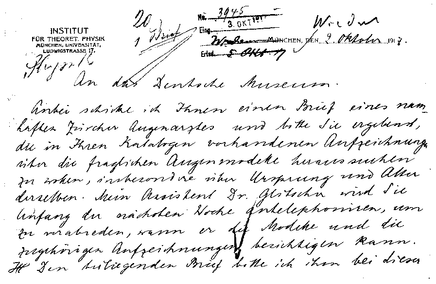 AS bittet das Deutsche Museum, für einen Züricher Augenarzt