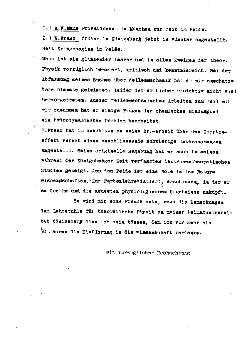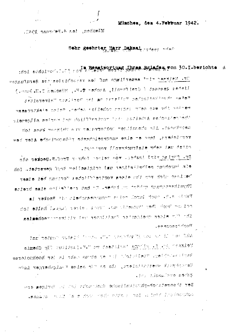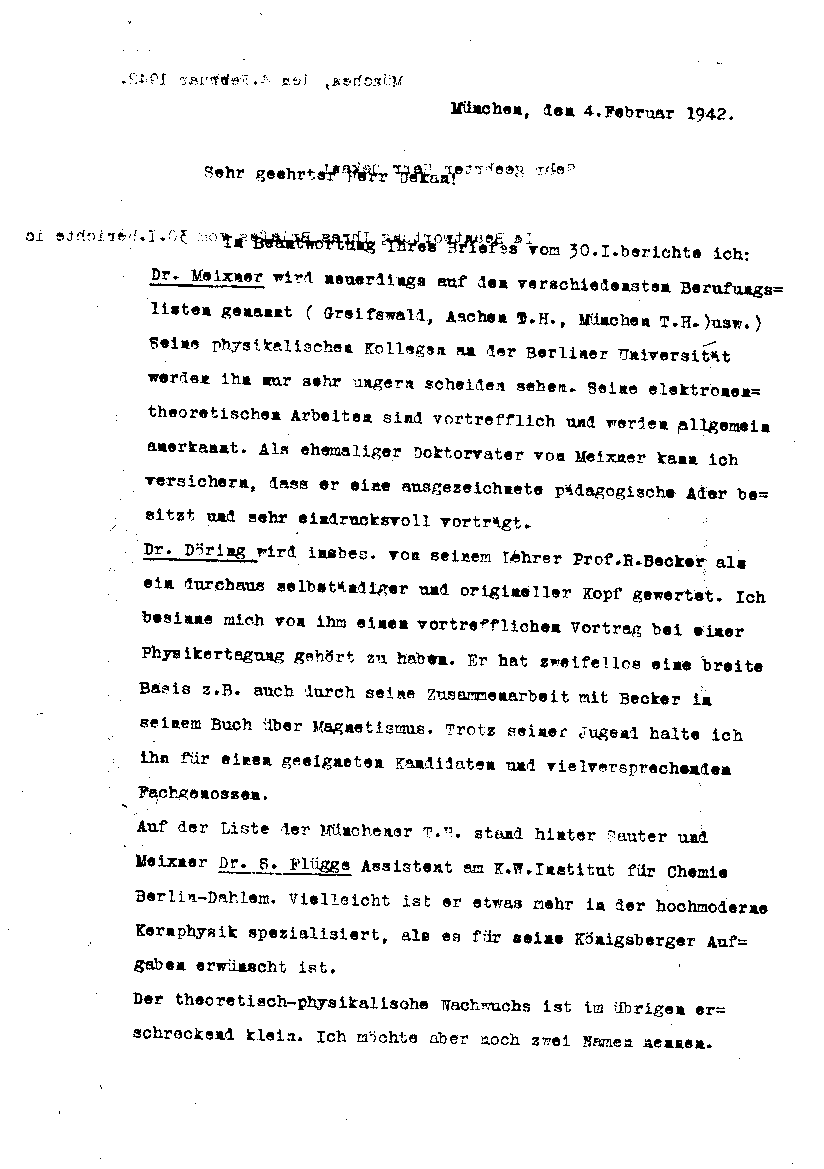 Arnold Sommerfeld an [Dekan 1942] [Universität Königsberg], 4. Februar 1942
