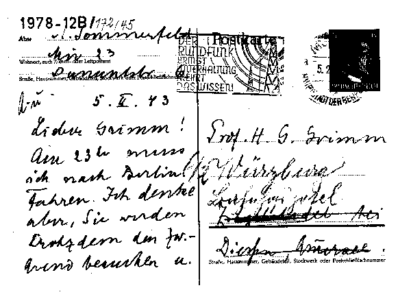Arnold Sommerfeld an Hans Georg Grimm, 5. Februar 1943