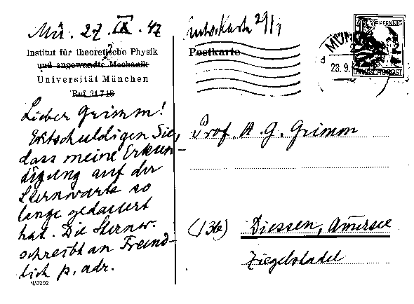 Arnold Sommerfeld an Hans Georg Grimm, 27. September 1947