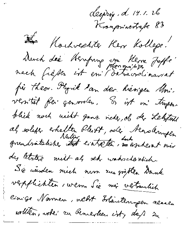 das Leipziger Extraordinariat für theoretische Physik; wünscht