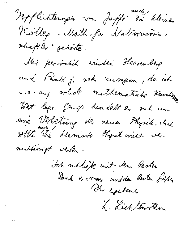 Leon Lichtenstein an Arnold Sommerfeld, 14. Januar 1926