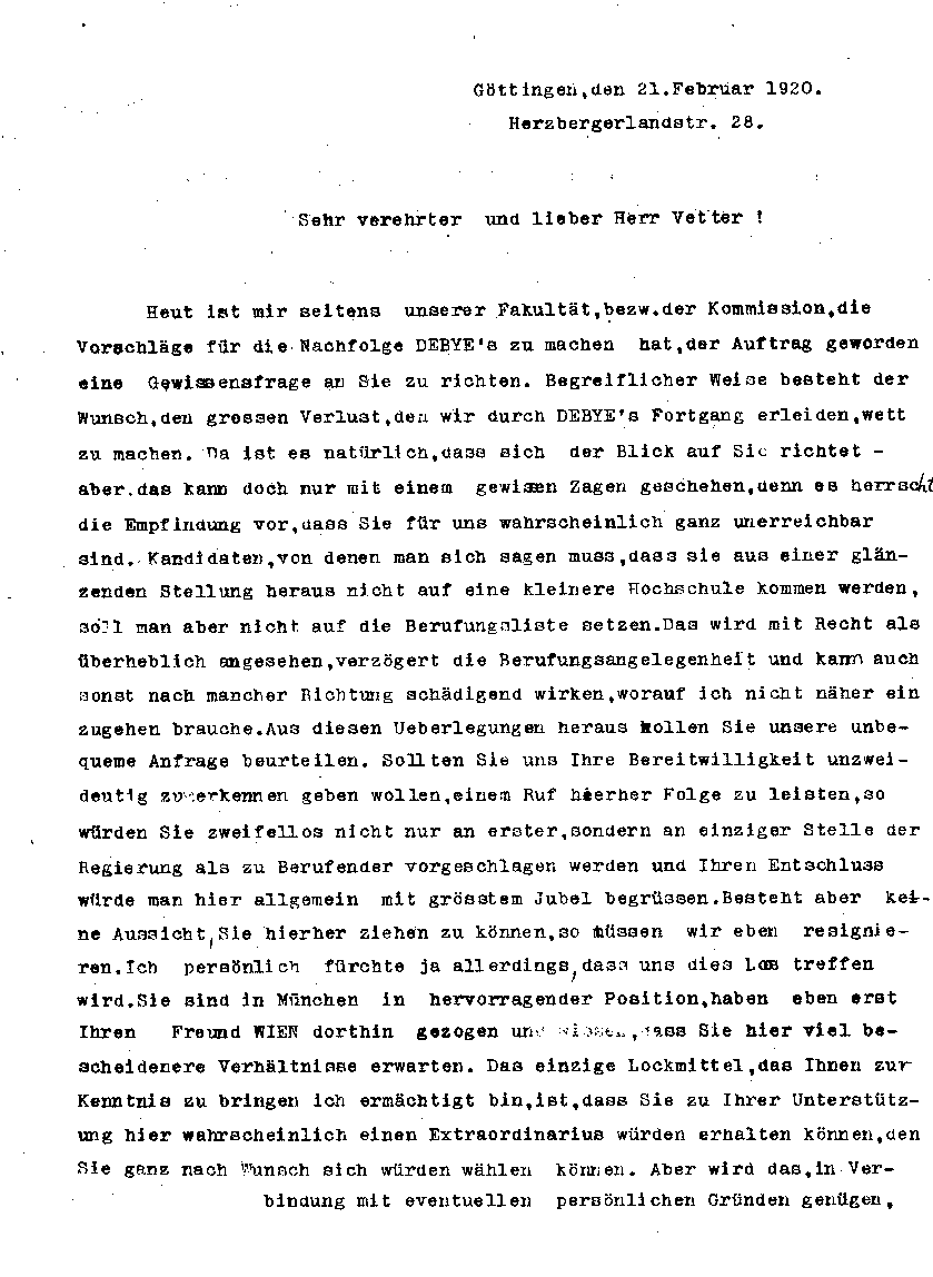 Otto Wallach an Arnold Sommerfeld, 21. Februar 1920