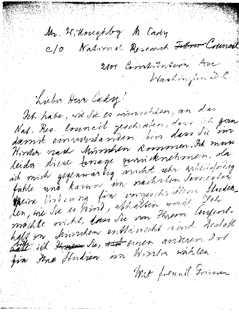 Arnold Sommerfeld an Willoughby Cady, nach 15. März 1933