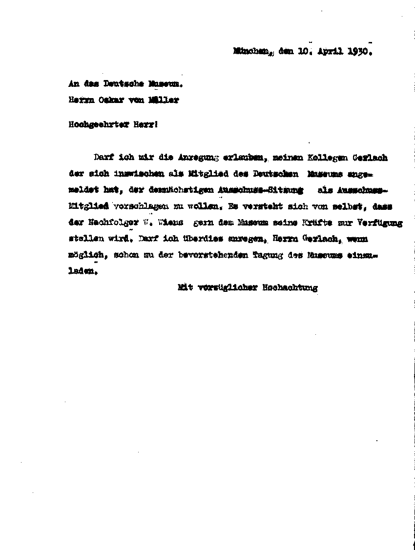Arnold Sommerfeld an Oskar von Miller, 10. April 1930