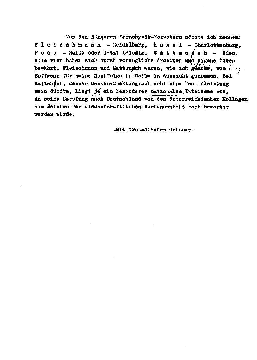 halten«; diskutiert mögliche Nachfolger (Kernphysik, Spektroskopie).