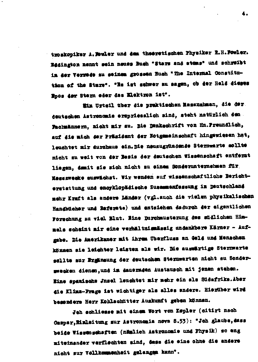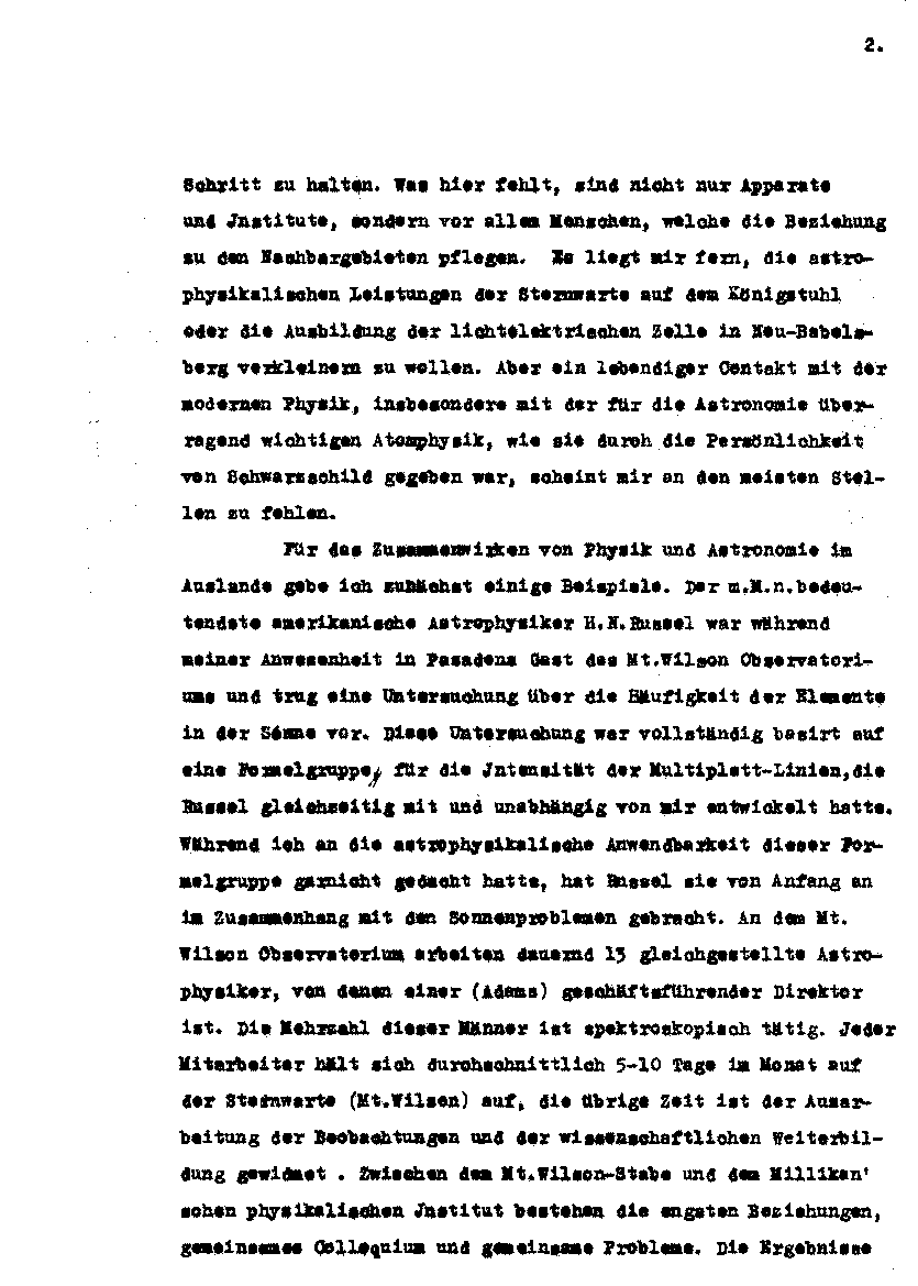 Denkschrift von AS »über den Stand der deutschen Astrophysik« an die