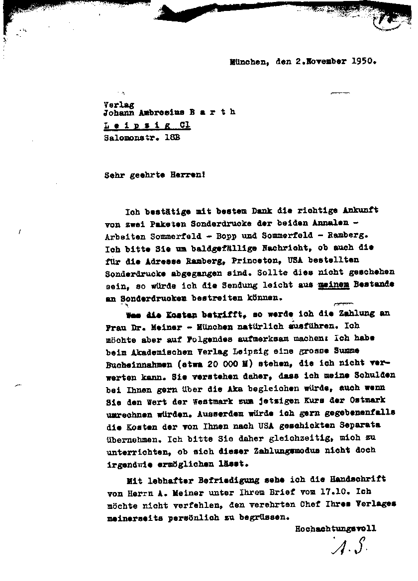 AS bestätigt Eingang der Sonderdrucke und bittet um Möglichkeit, in Ostmark zahlen zu dürfen.