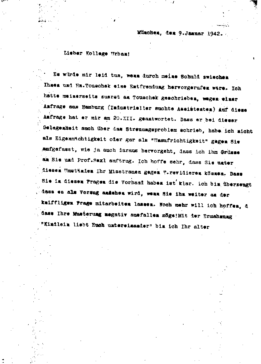 Arnold Sommerfeld an Paul Urban, 9. Januar 1942