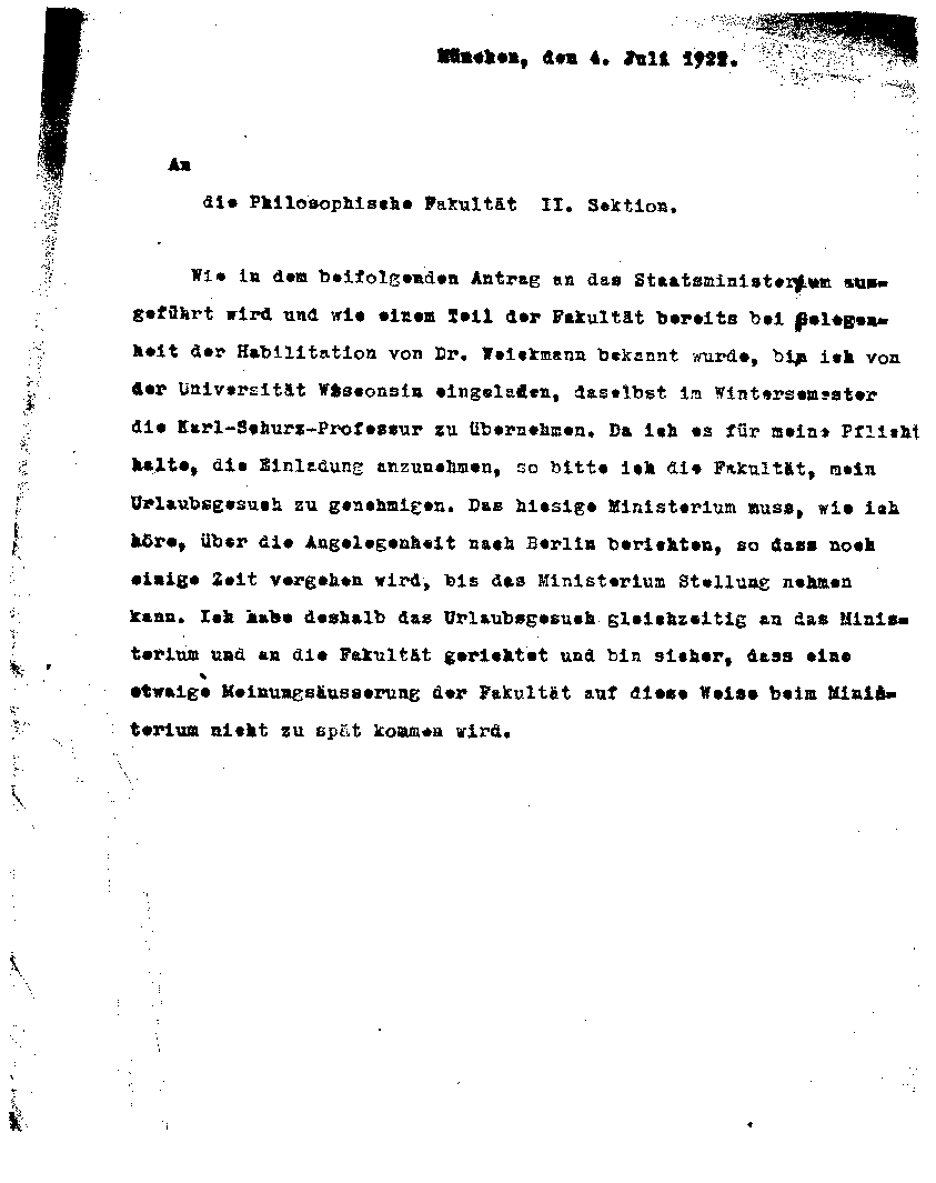 Arnold Sommerfeld an München, U, 4. Juli 1922