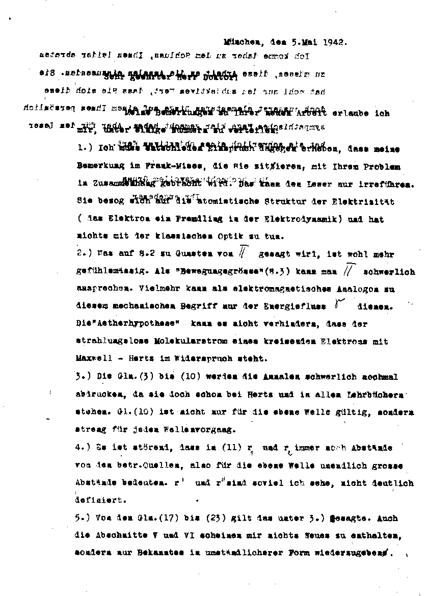 Arnold Sommerfeld an Otto Schriever, 5. Mai 1942