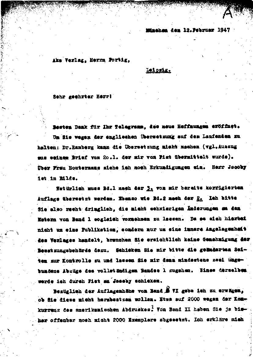 Arnold Sommerfeld an Felix Portig, 12. Februar 1947